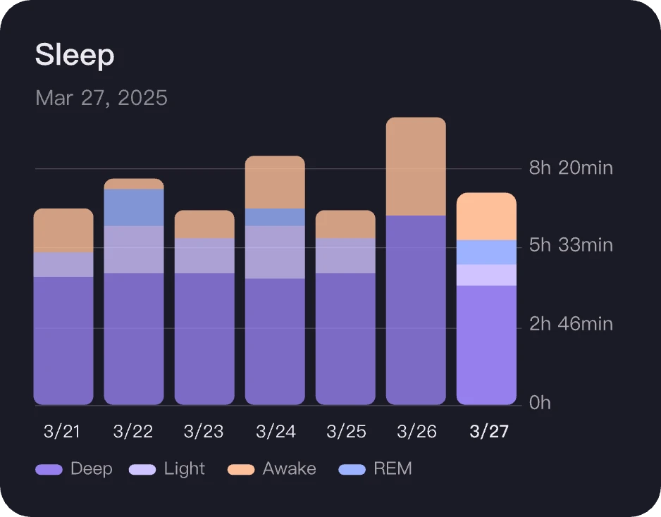 It allows you to have a deep understanding of sleep quality and you can cultivate healthy sleep habits for a restful night's sleep by utilizing this sleep data and guidance.